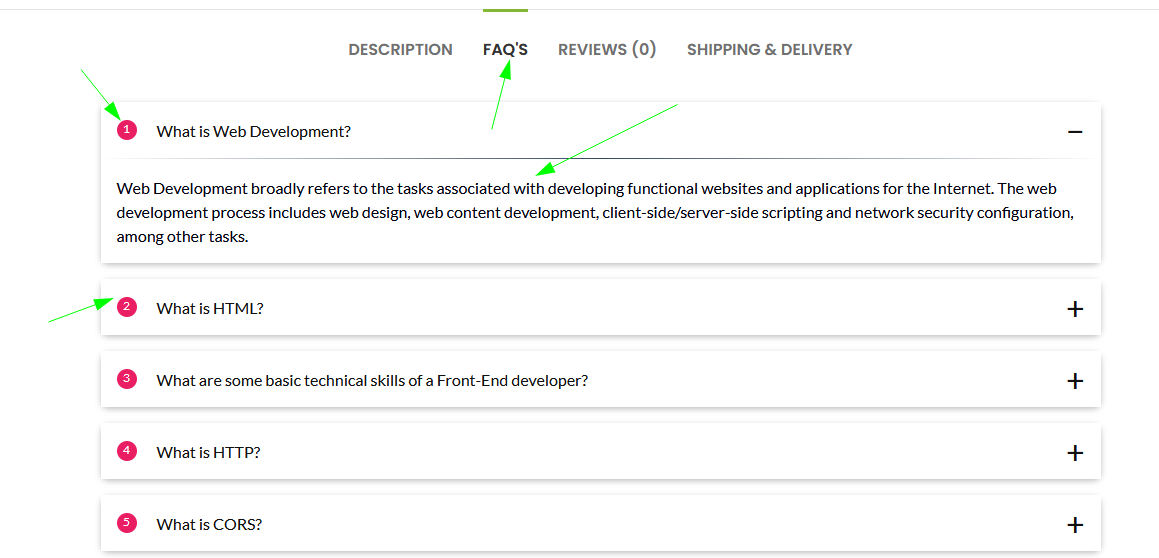 By following these steps, you can successfully set up and configure different faq’s for product.