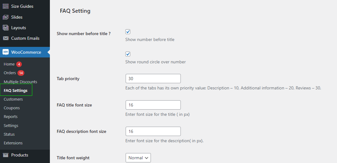 Additionally, you have the option to enable or disable the display of FAQs for specific products.